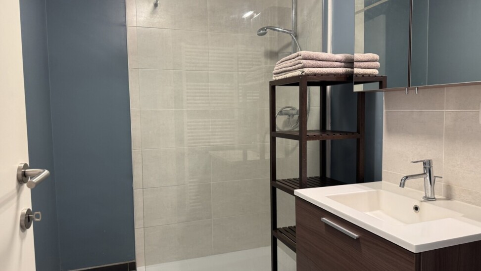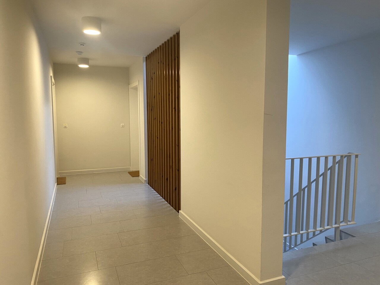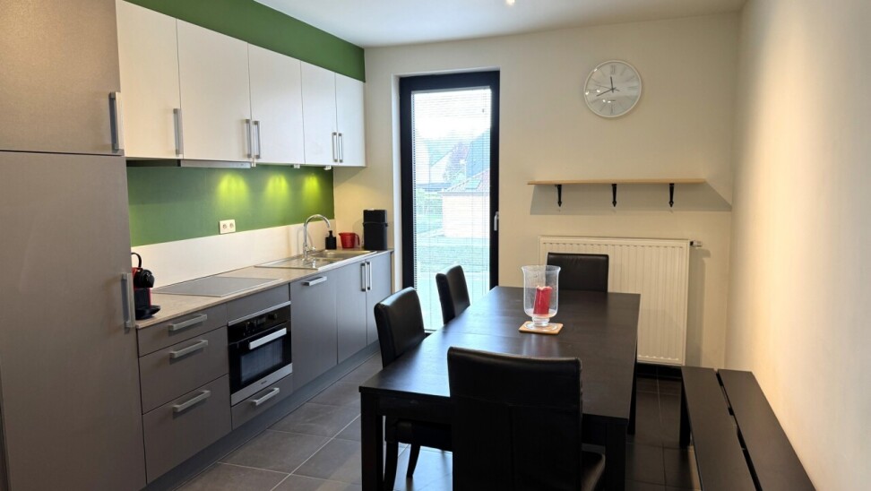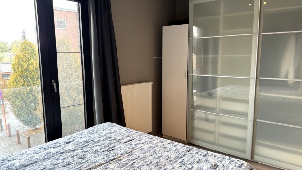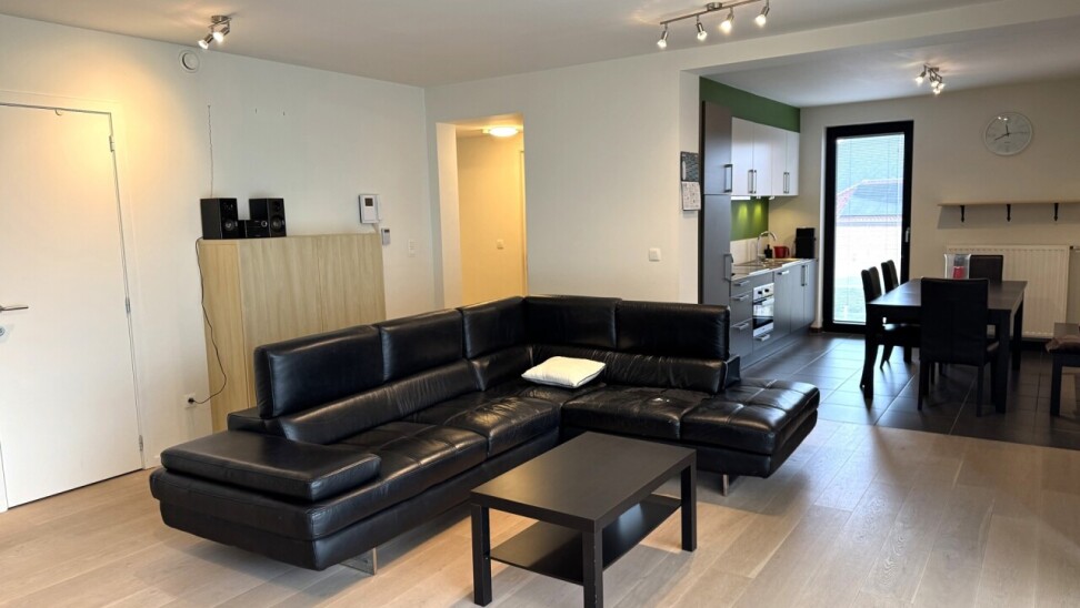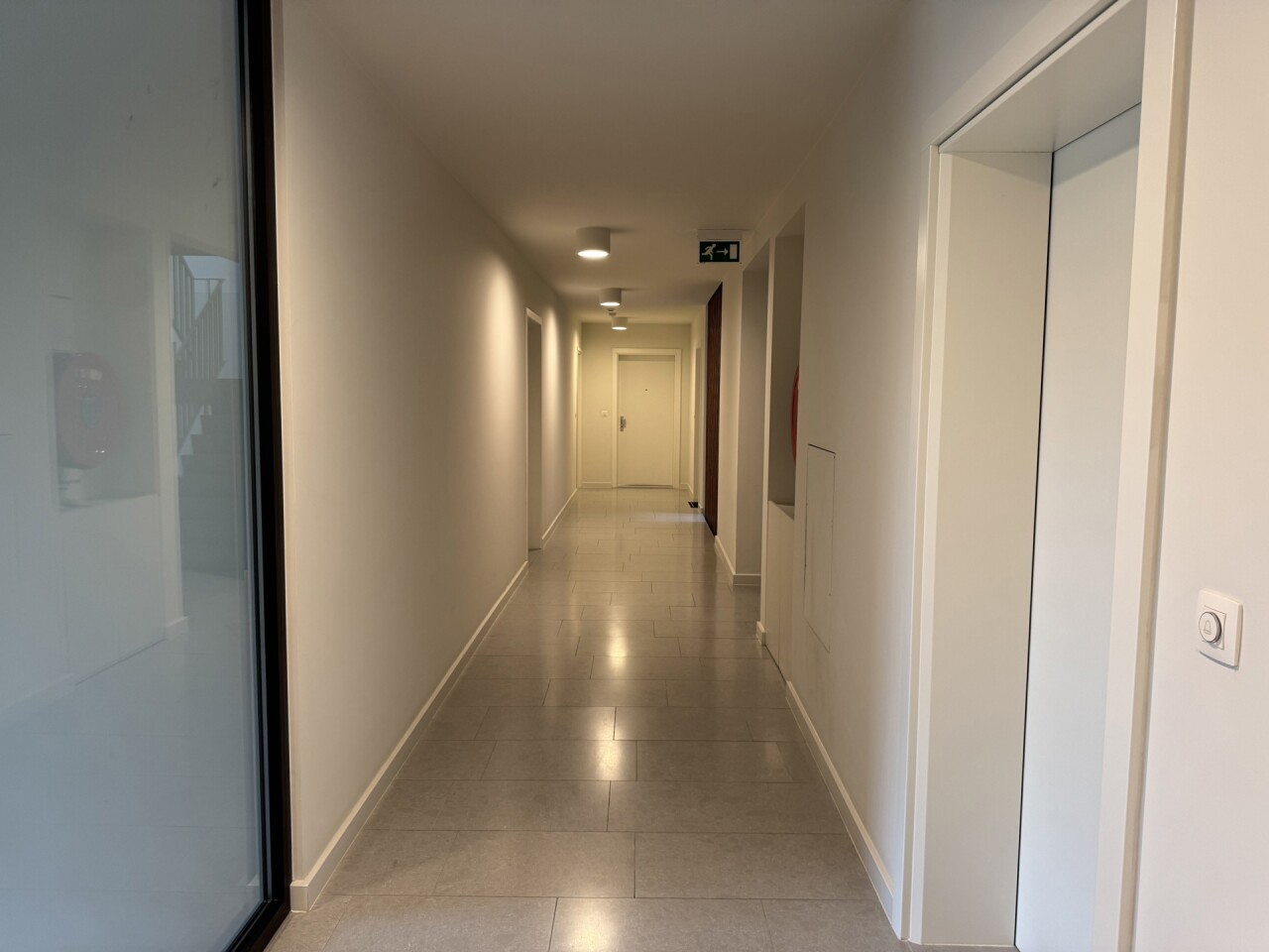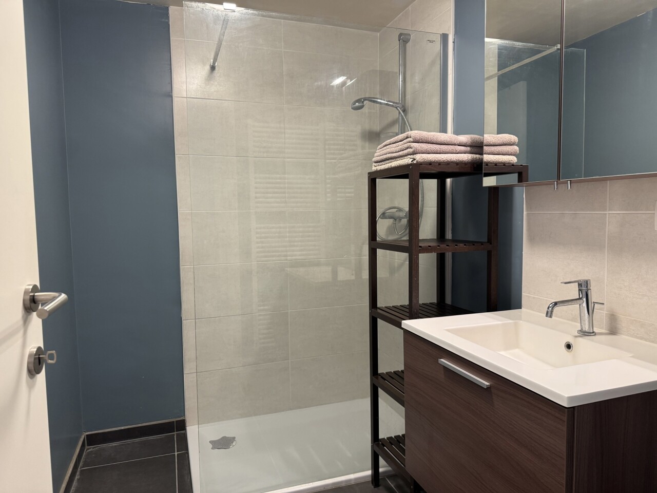 Indeling: inkomhal, ingebouwde vestiairekast, ruime en lichtrijke woonkamer met open volledig geïnstalleerde keuken en een aparte berging/wasplaats, slaapkamer, badkamer met inloopdouche en lavabo en een apart toilet. Mooi en ruim terras te betreden via een schuifraam in de woonkamer. Tevens kelderberging en een autostaanplaats inbegrepen. De huurprijs bedraagt 1050€/maand + 100€ voor de maandelijkse lasten. Verbruik individueel en er is een lift aanwezig!