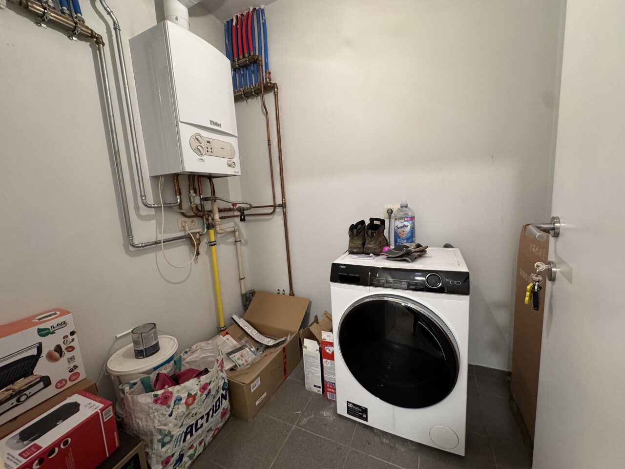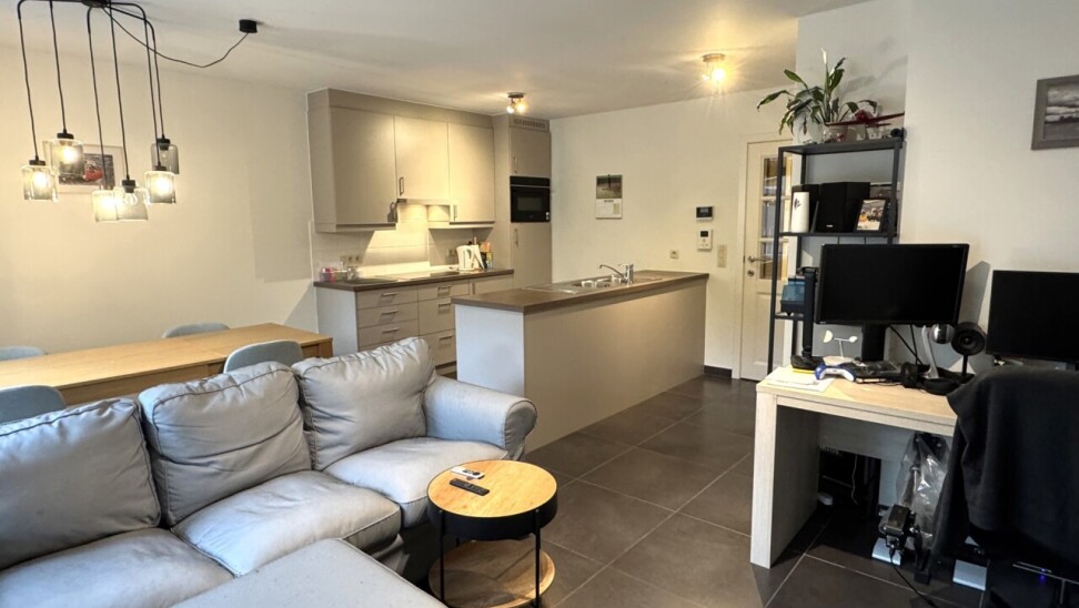 Indeling: inkomhal, apart gastentoilet, ruime en lichtrijke woonkamer met open volledig geïnstalleerde keuken, slaapkamer, badkamer. Mooi en ruim overdekt terras te betreden via een schuifraam in de woonkamer. Tevens wasberging, een tuinhuisje en een open autostaanplaats inbegrepen in de prijs.