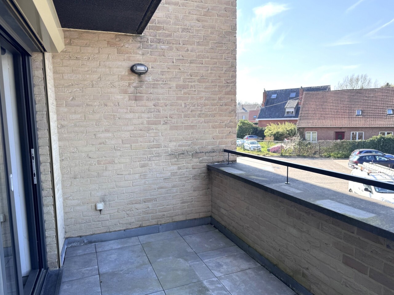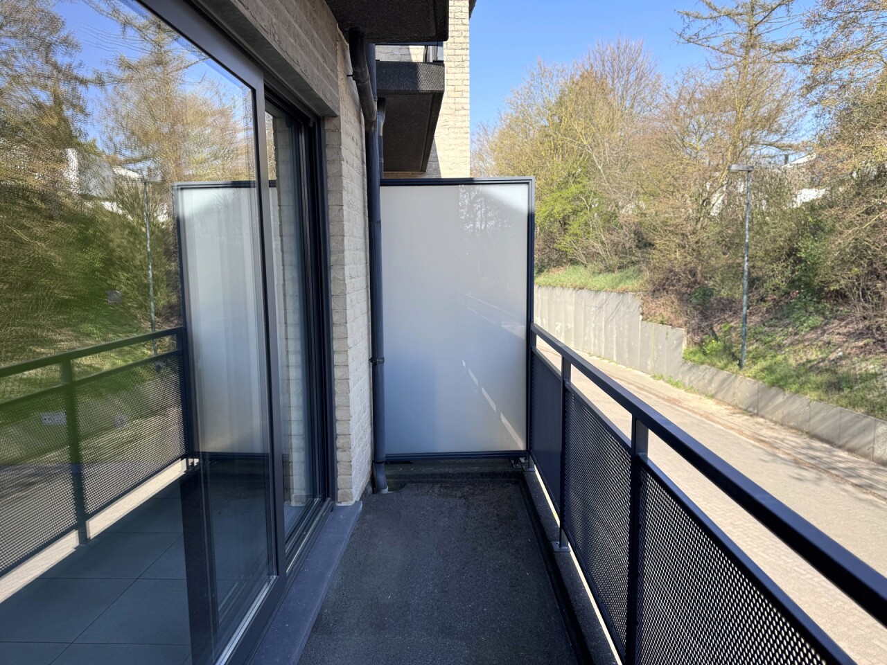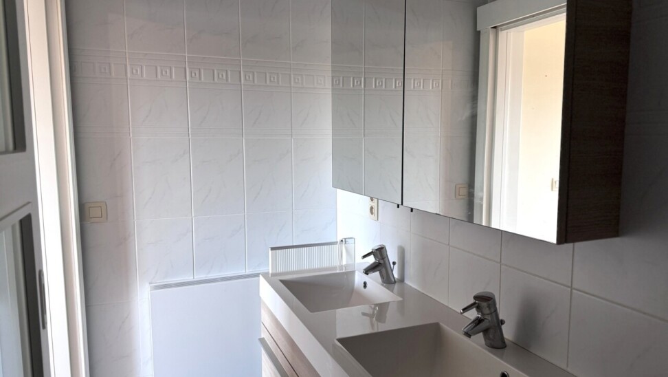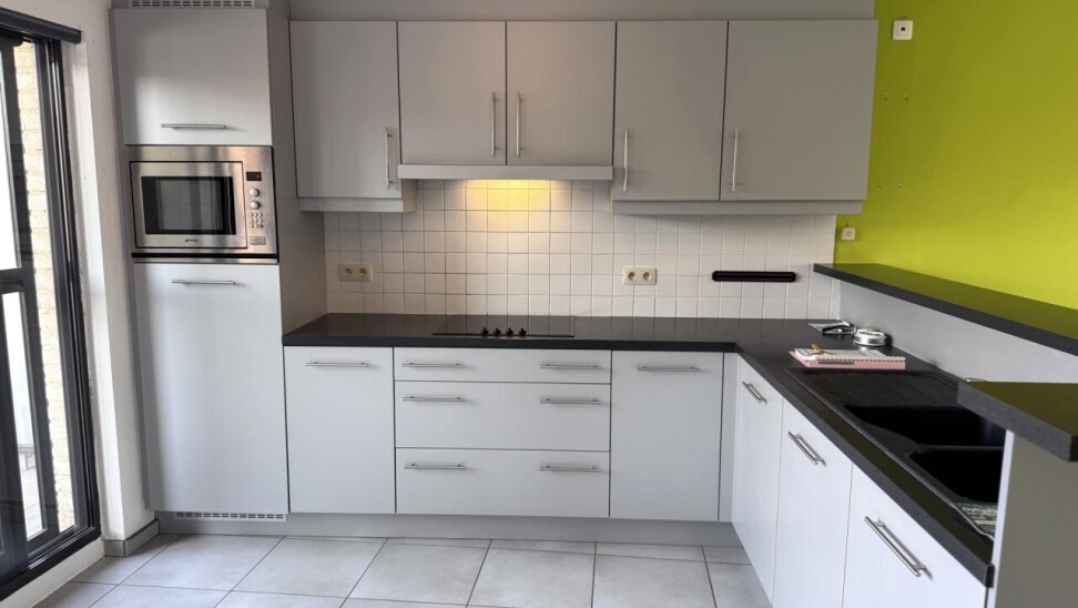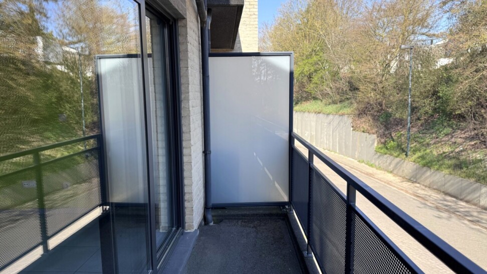Het appartement beschikt over twee terrassen, waarvan één ruim en overdekt, toegankelijk via een schuifraam in de leefruimte – ideaal om in alle seizoenen te genieten van buitenruimte.