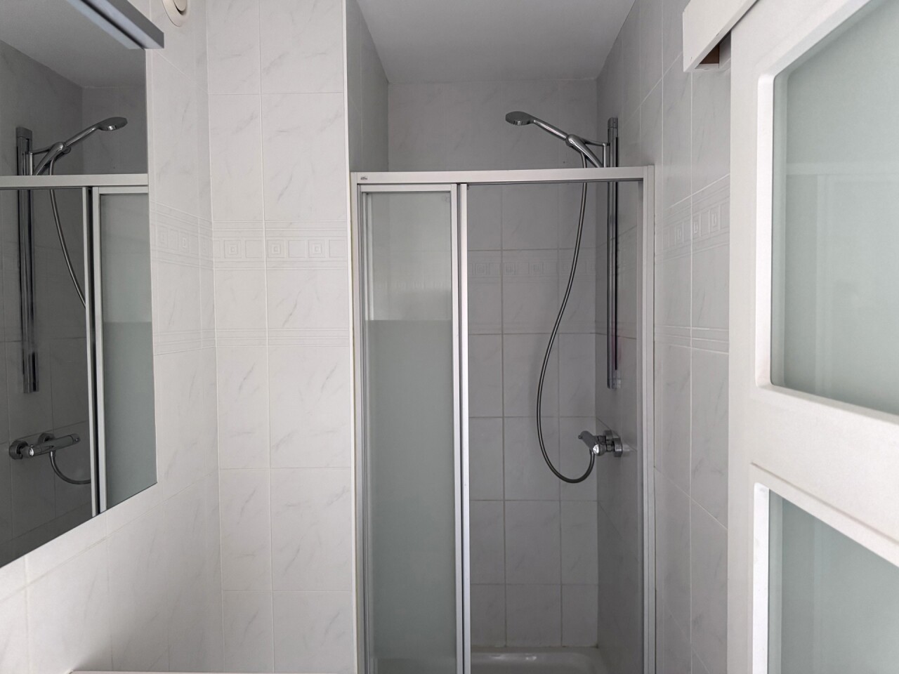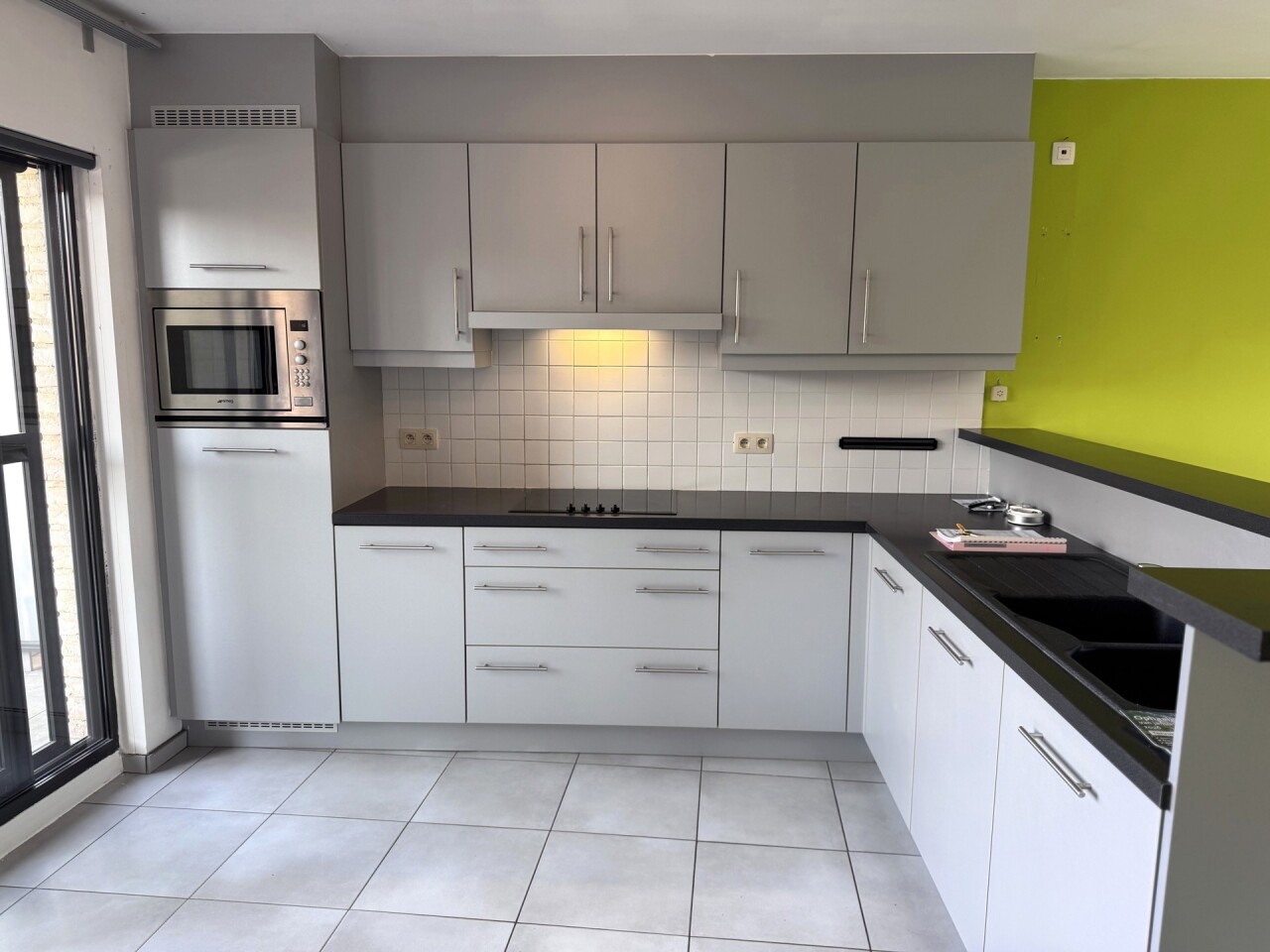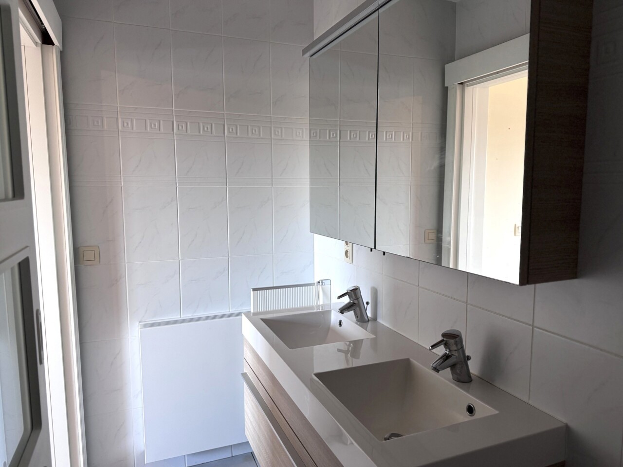 Het appartement beschikt over twee terrassen, waarvan één ruim en overdekt, toegankelijk via een schuifraam in de leefruimte – ideaal om in alle seizoenen te genieten van buitenruimte.