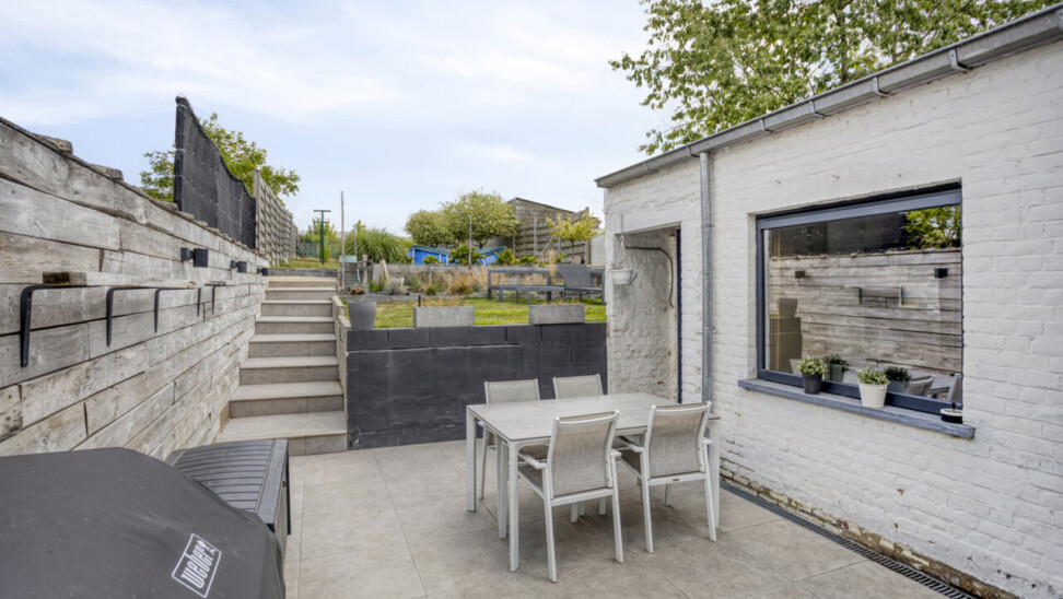 Buiten vindt u een aangename tuin met terras, te betreden via een zijpoortje, het schuifraam in de keuken en via de berging. Een tuin waarin u volop kunt genieten van de rust en privacy.
