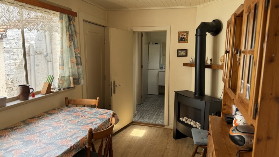 Indeling: GV: inkomhal, woonkamer met eetplaats, keuken, badkamer, apart toilet en koertje. De tuin ligt voor de woning .