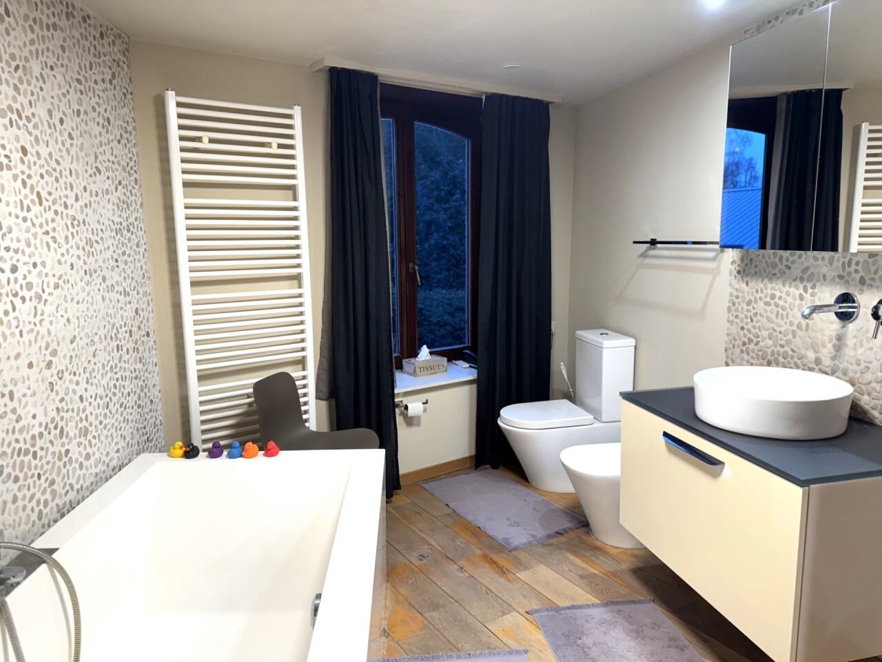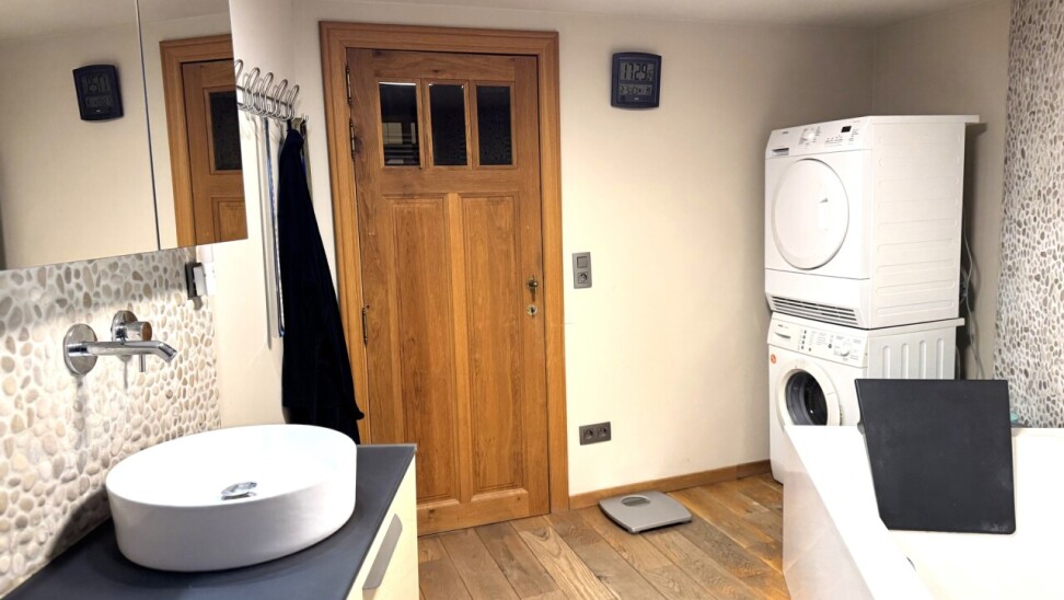 2e verdieping: slaapkamer en badkamer (toilet, bidet, lavabo, ligbad en aansluiting voor wasmachine en droogkast)