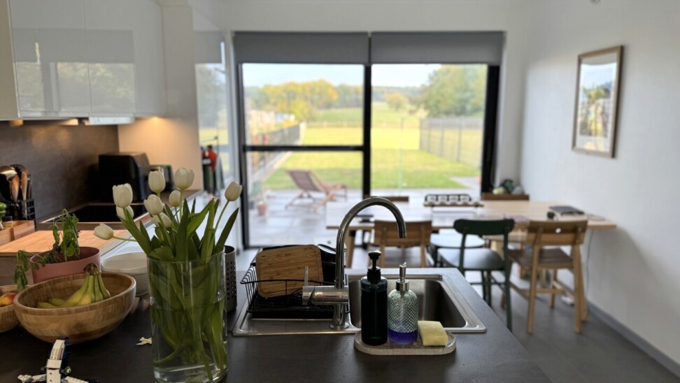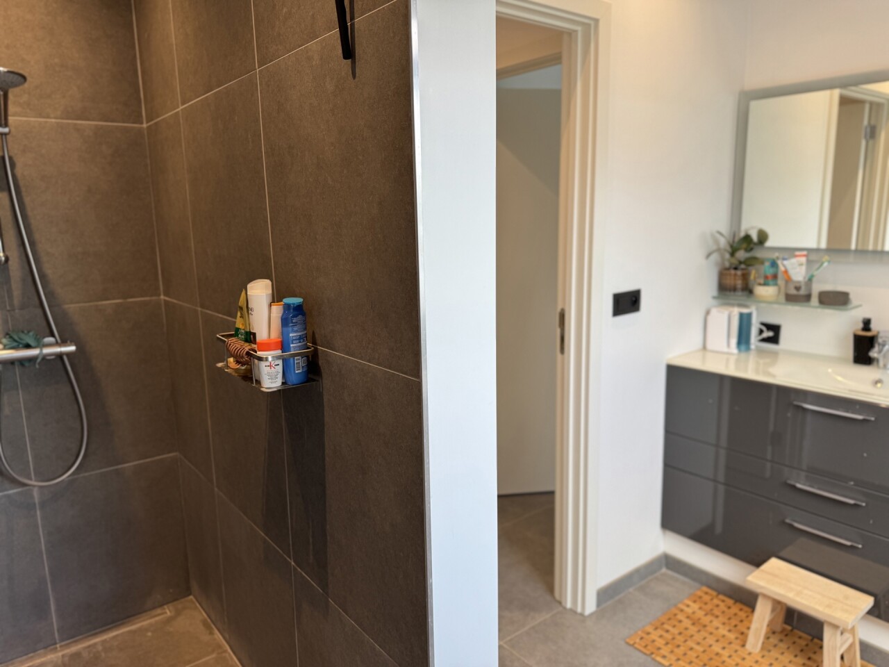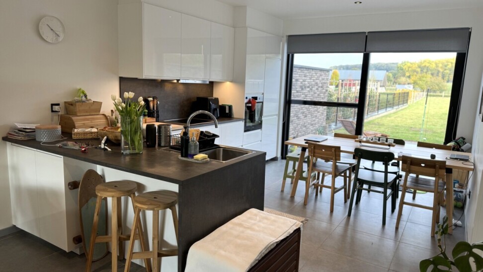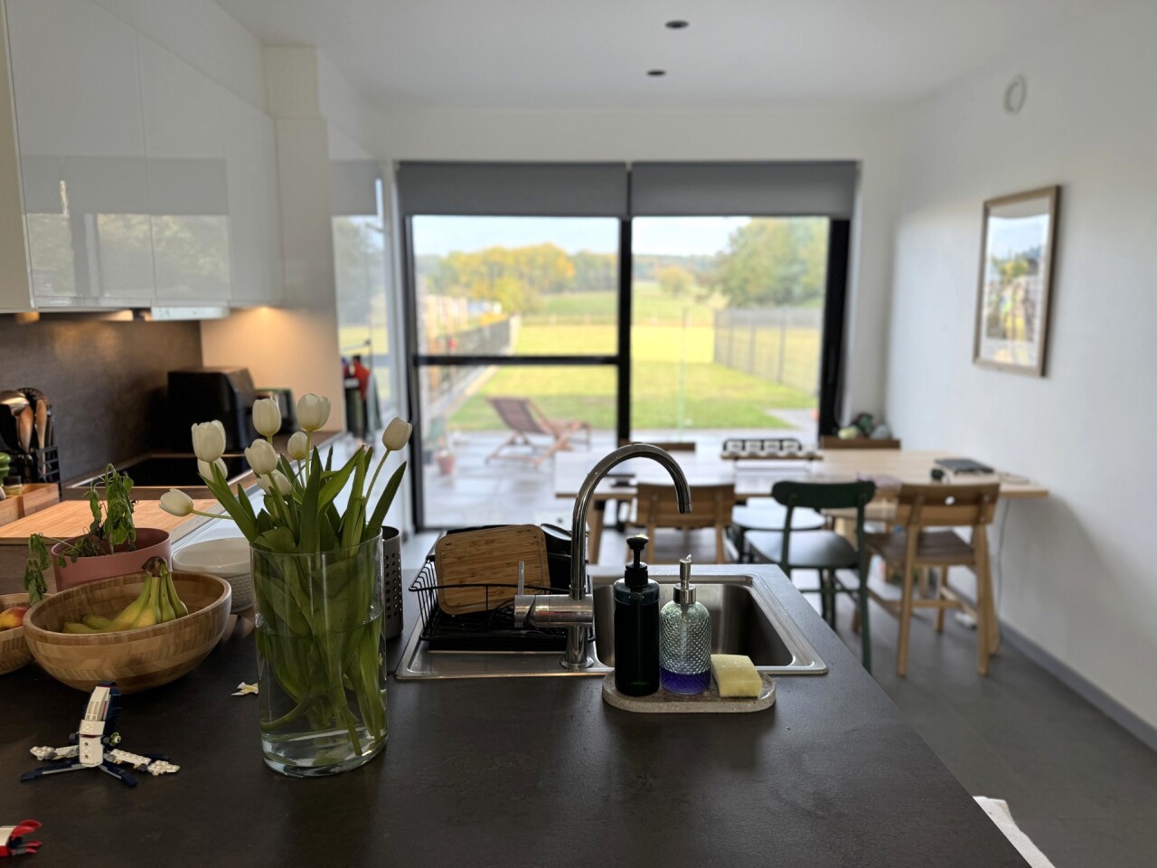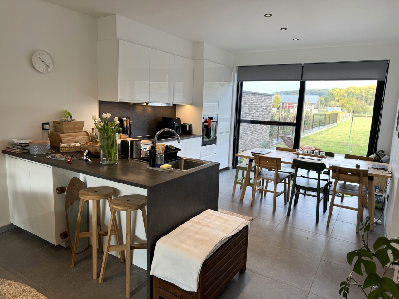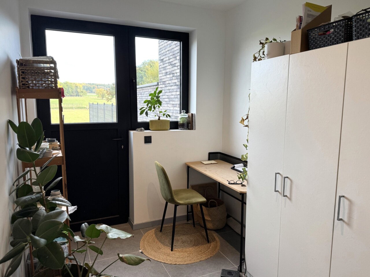 Deze recente woning werd zeer goed uitgerust (ventilatie, vloerverwarming, alarminstallatie, waterverzachter, regenwaterrecuperatie).