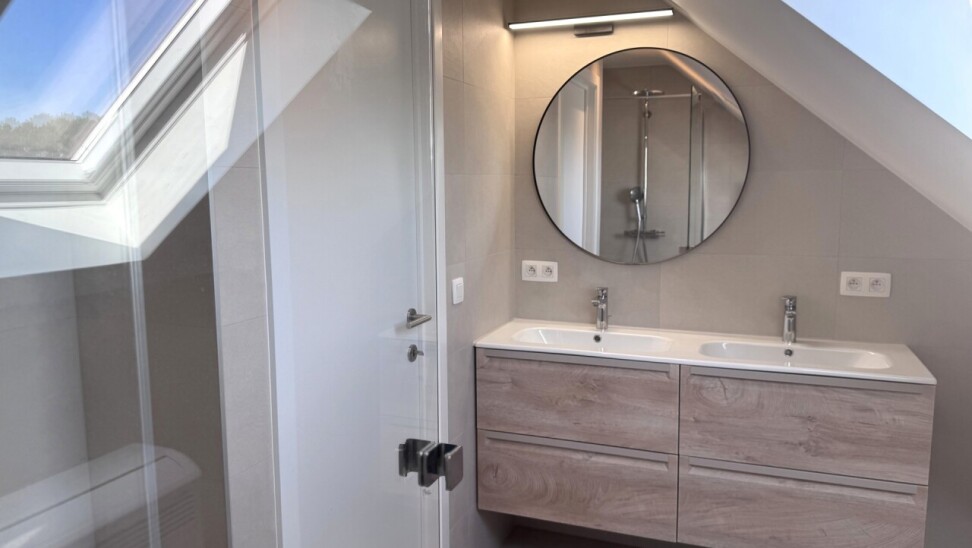 Op de 1ste verdieping: nachthal met apart toilet, 3 slaapkamers (waaronder 2 kleine), kleine zolder en een badkamer (douche en lavabo).