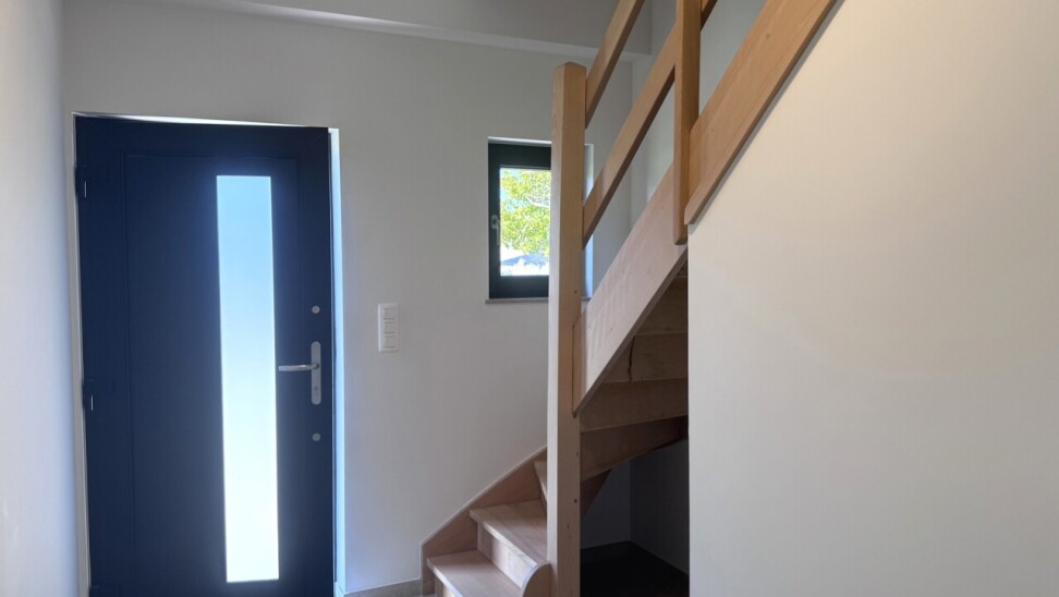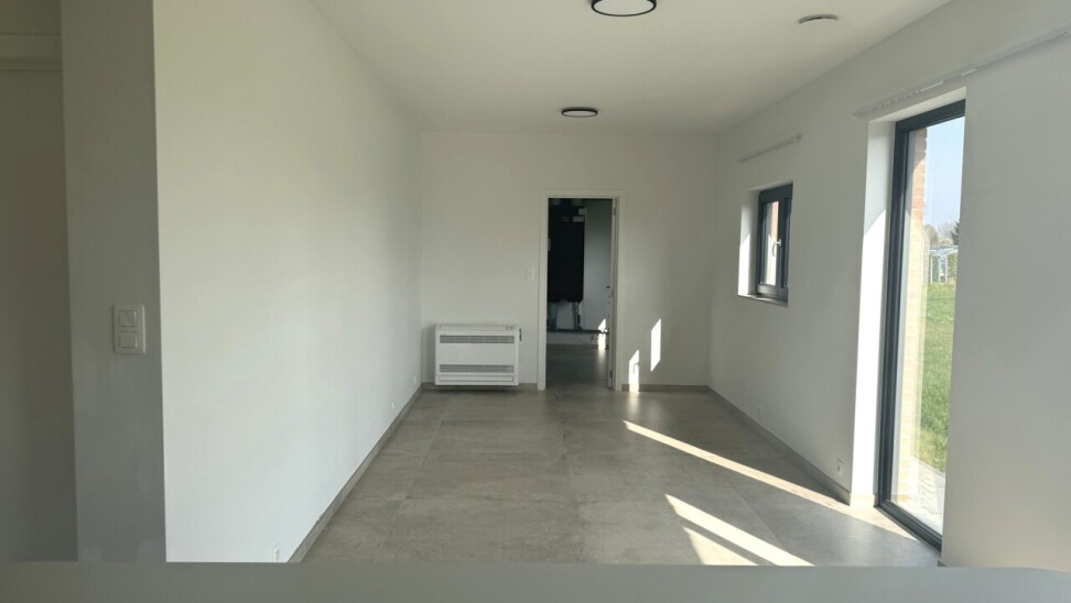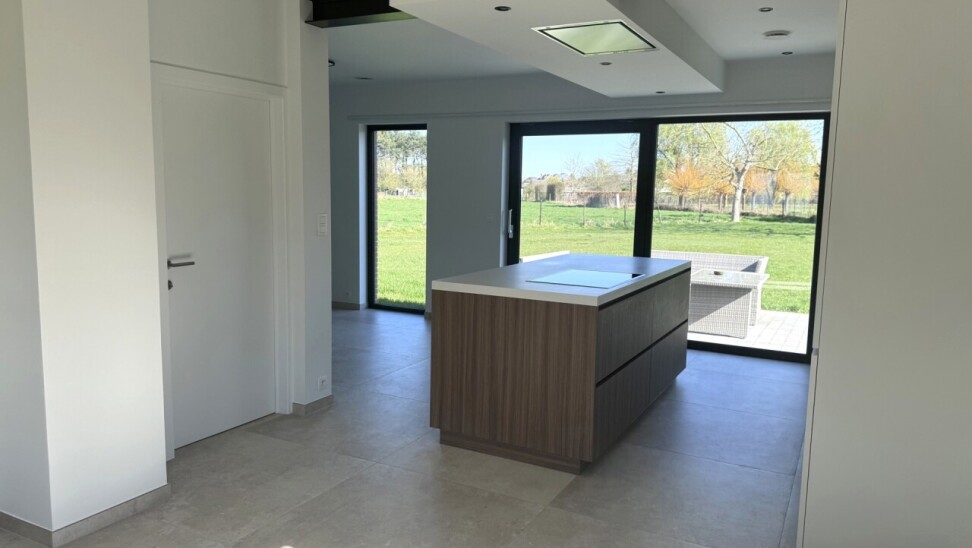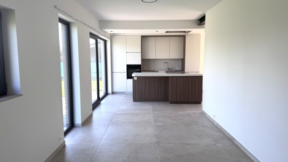 Prachtige, energiezuinige woning (OB) met 3 slaapkamers, fantastische tuin en garage op een gunstige ligging in Herent vlakbij Leuven. De woning bestaat op de gelijkvloerse verdieping uit een inkomhal met apart toilet, een lichtrijke woonkamer en eetplaats met volledig geïnstalleerde open keuken met eiland, een wasberging, een garage met sectionaalpoort, een bureau en een tuin met terras.