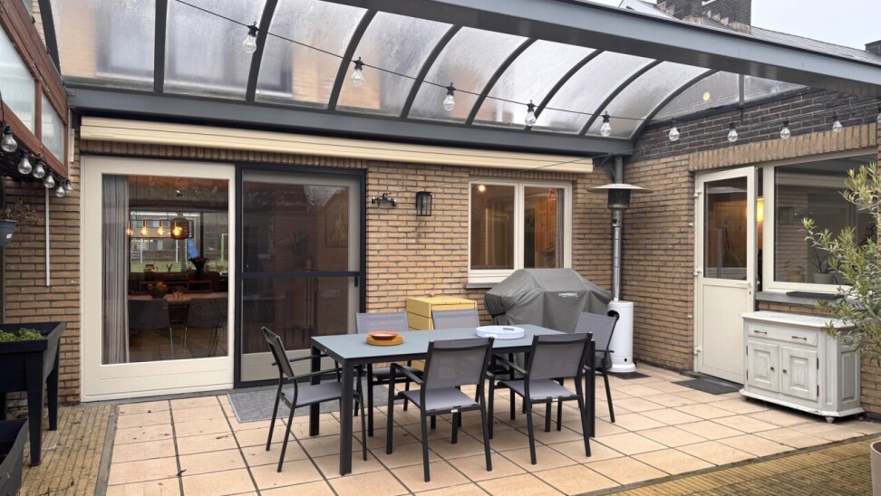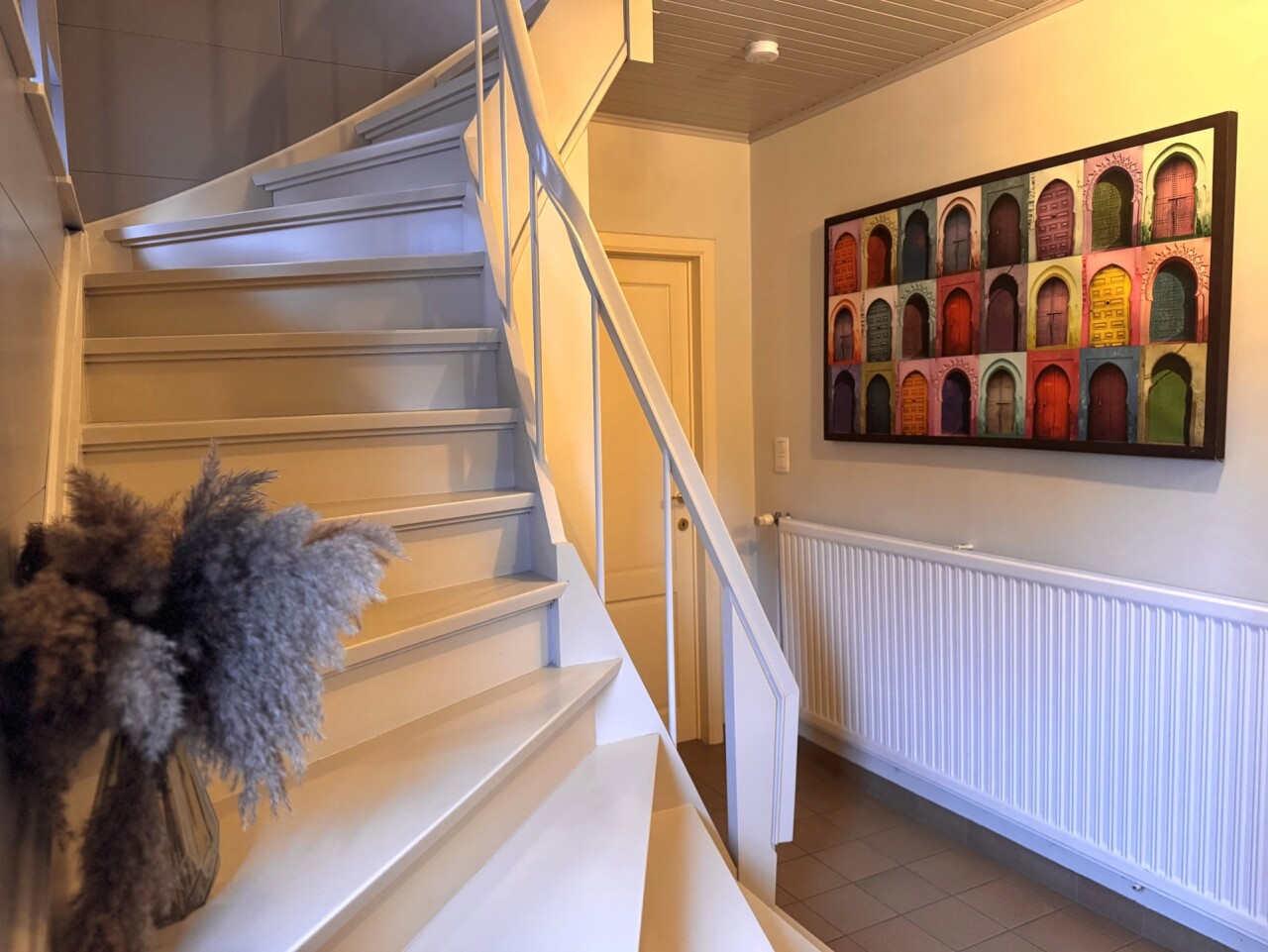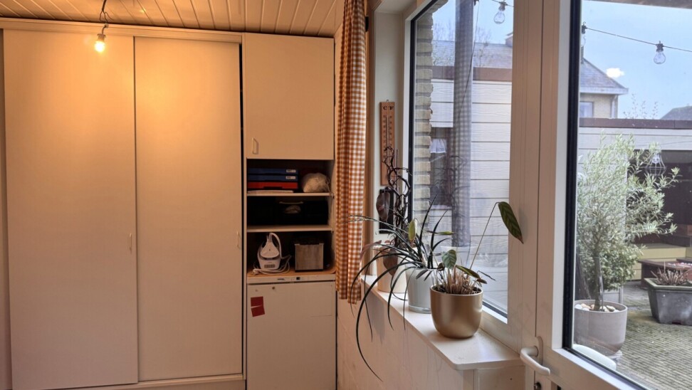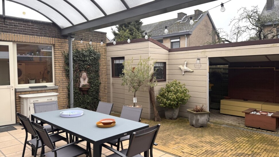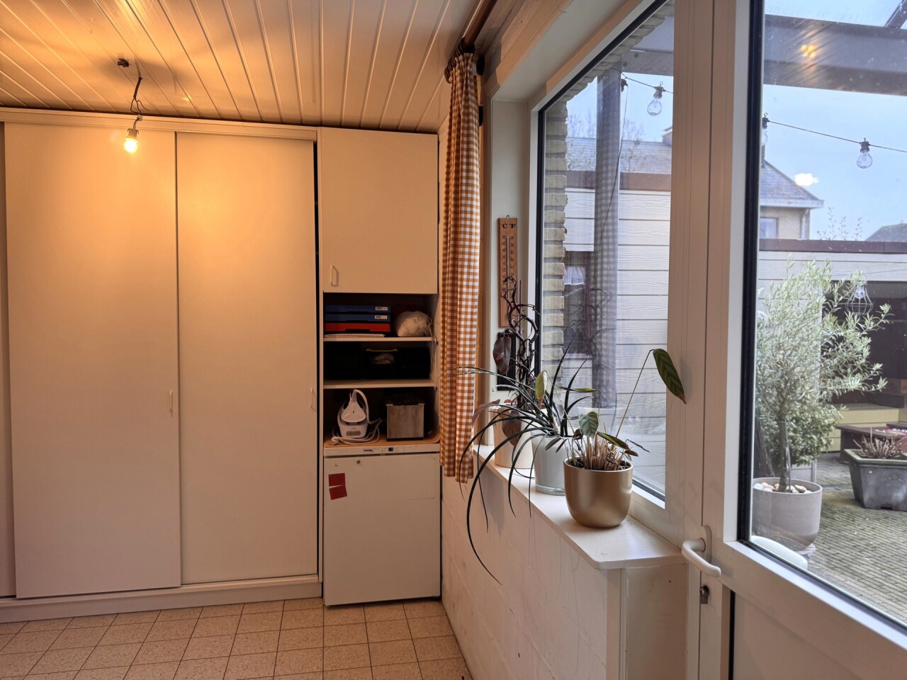 Buiten beschikt de woning nog over een super gezellig overdekt zitterras met een aparte berging.
