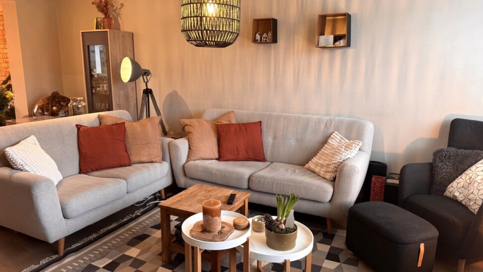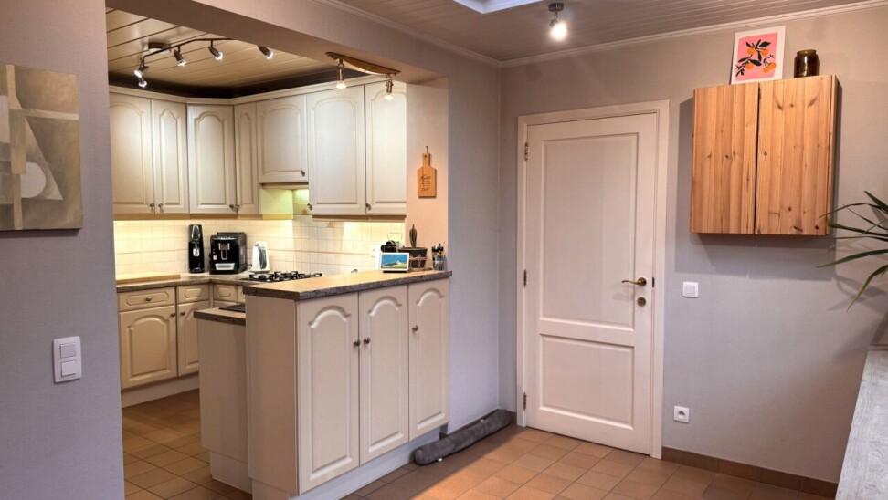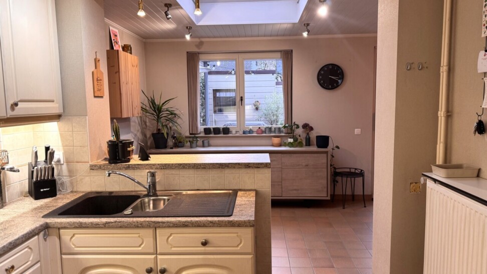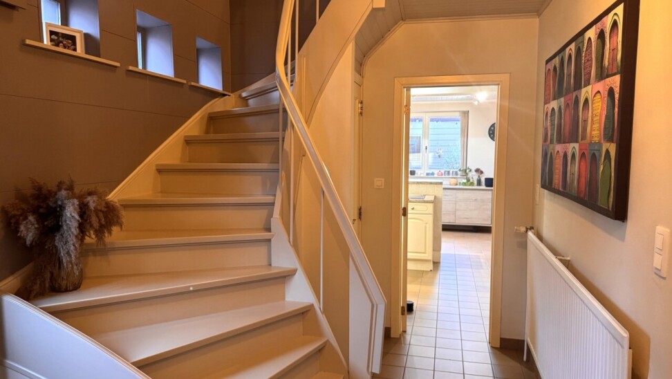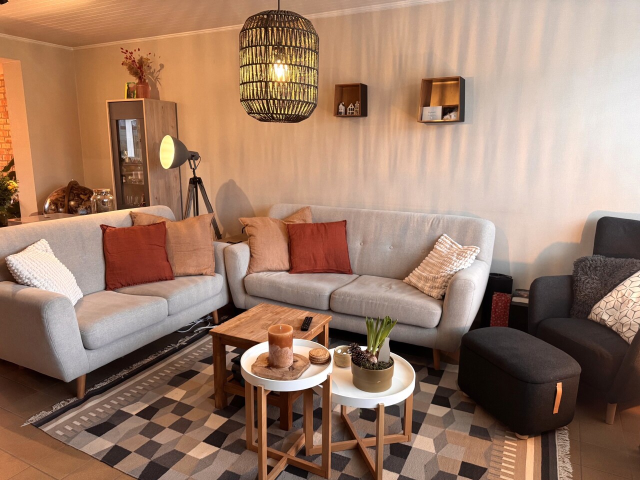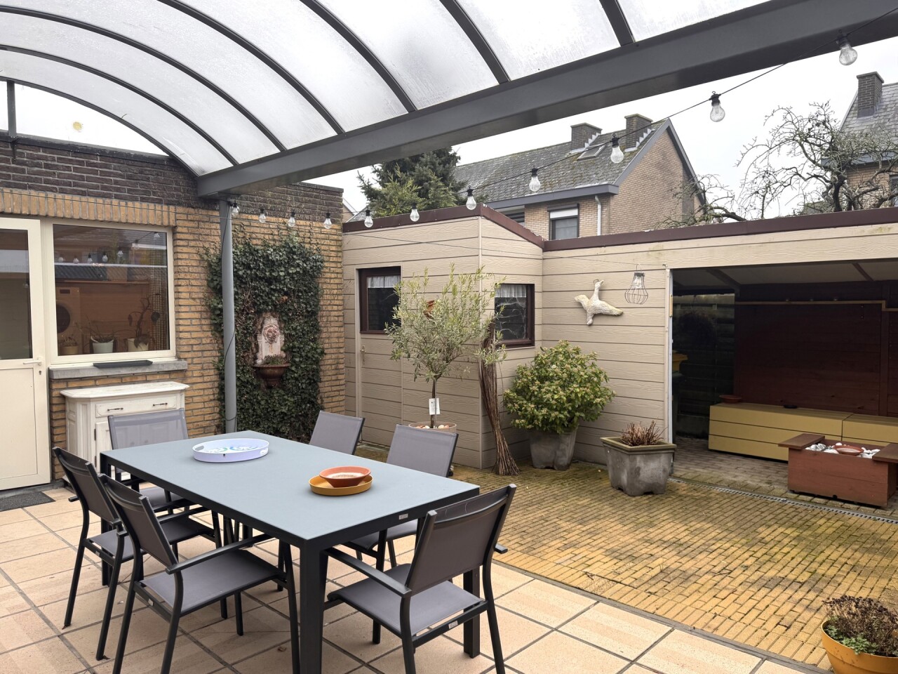 Buiten beschikt de woning nog over een super gezellig overdekt zitterras met een aparte berging.