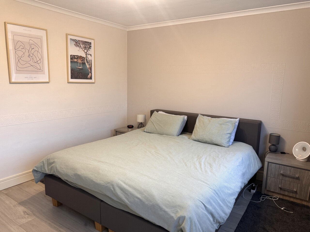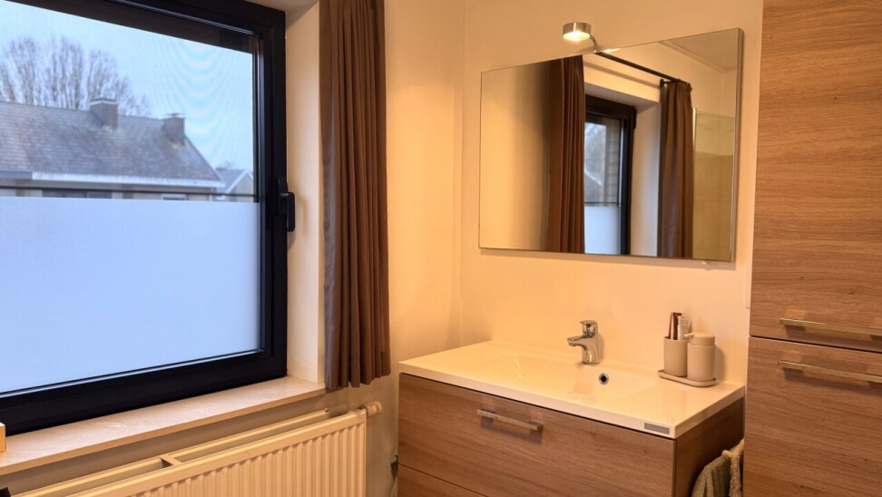 Eerste verdieping: 3 slaapkamers, badkamer (douche in bad, lavabo en wc).