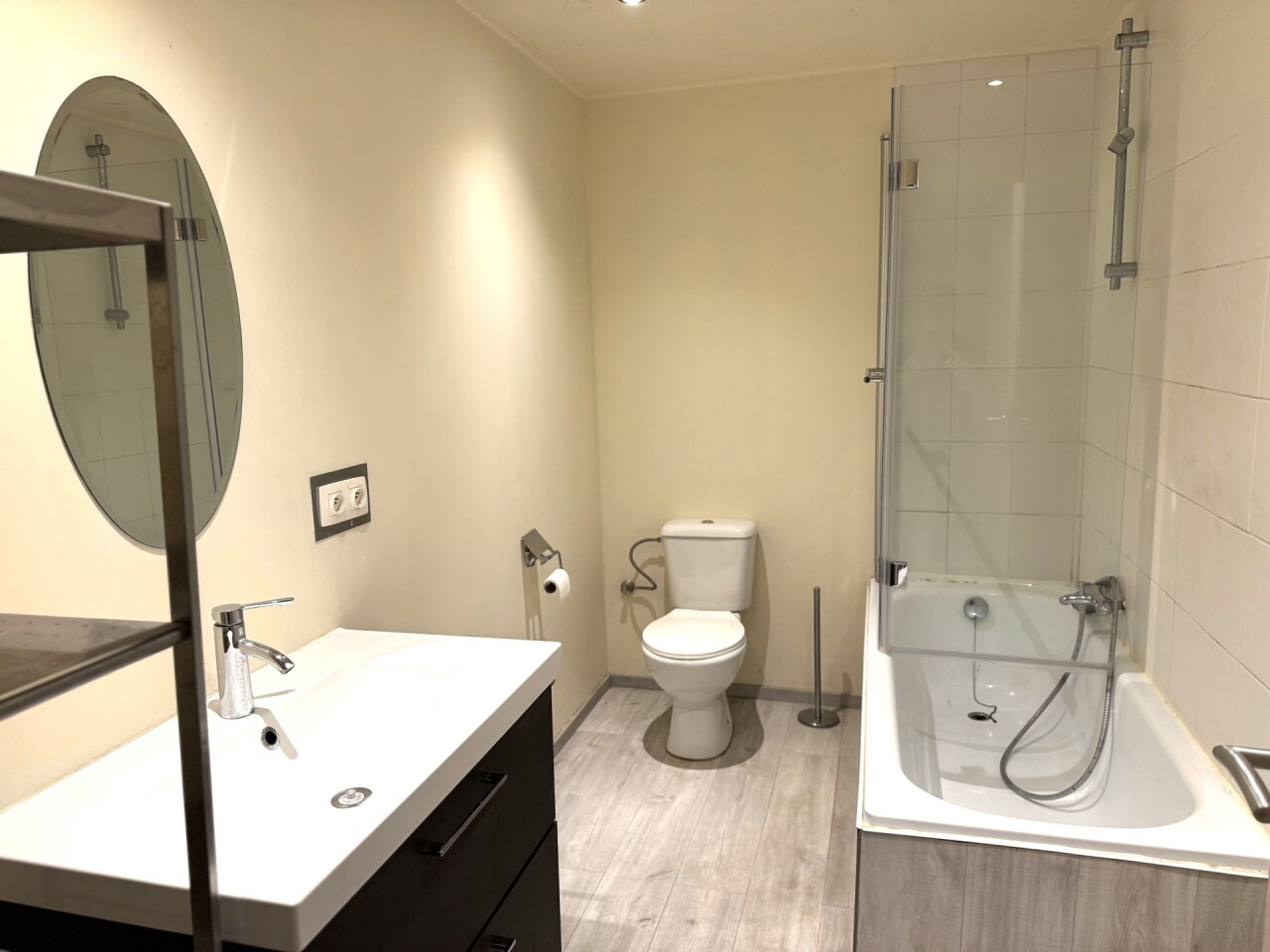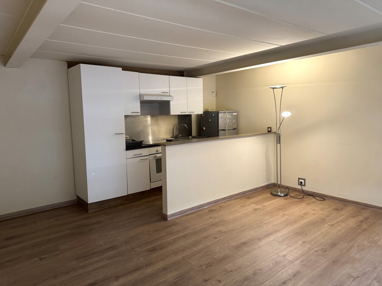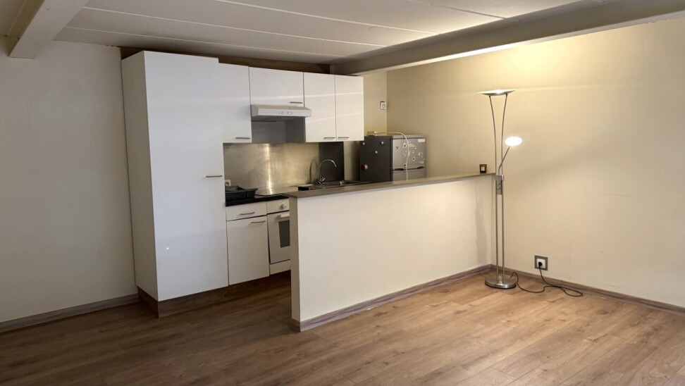 De studio omvat een lichtrijke leefruimte met open keuken en een aparte badkamer. Ideaal voor één persoon die op zoek is naar een aangename woonruimte op een rustige ligging.