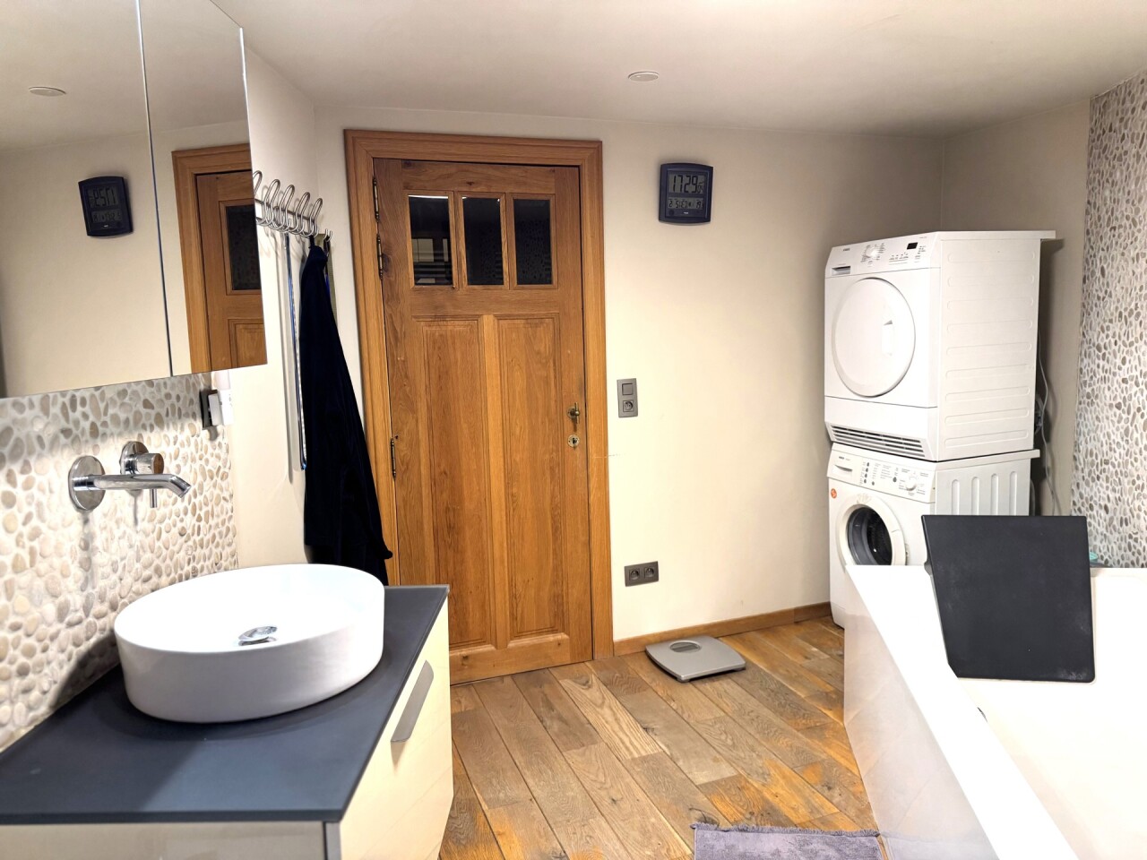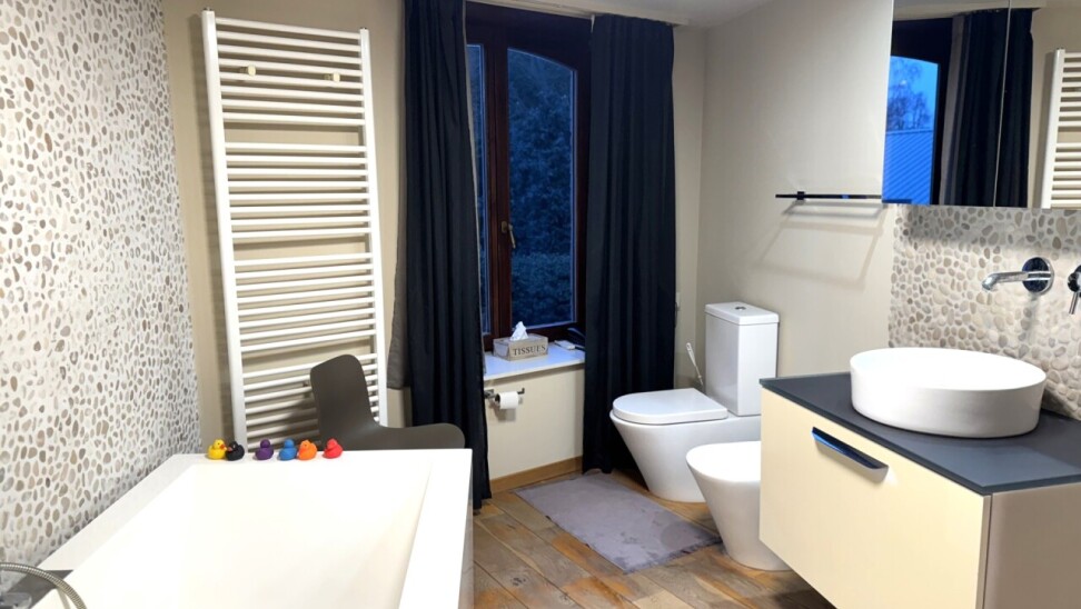 2e verdieping: slaapkamer en badkamer (toilet, bidet, lavabo, ligbad en aansluiting voor wasmachine en droogkast)